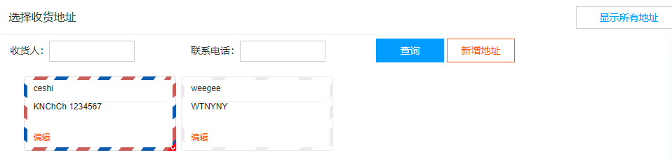 被选中的收货地址框是彩色的